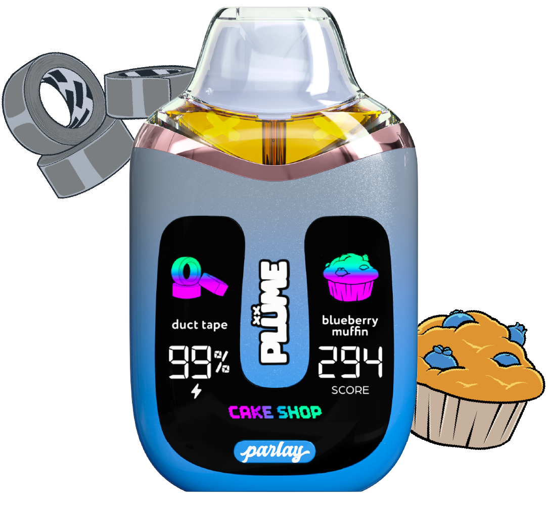 Satisfy your sweet tooth with the Plume Parlay 2g Liquid Live Diamonds Blend Vape in the rich and flavorful Cake Shop hybrid blend. This all-in-one disposable device delivers three curated flavor profiles in one sleek unit: Duct Tape, Blueberry Muffin, and their mouthwatering fusion, Cake Shop. Formulated with natural terpenes and enhanced by proprietary atomization technology, this vape offers smooth vapor, dessert-inspired flavor, and balanced effects that fit any vibe.